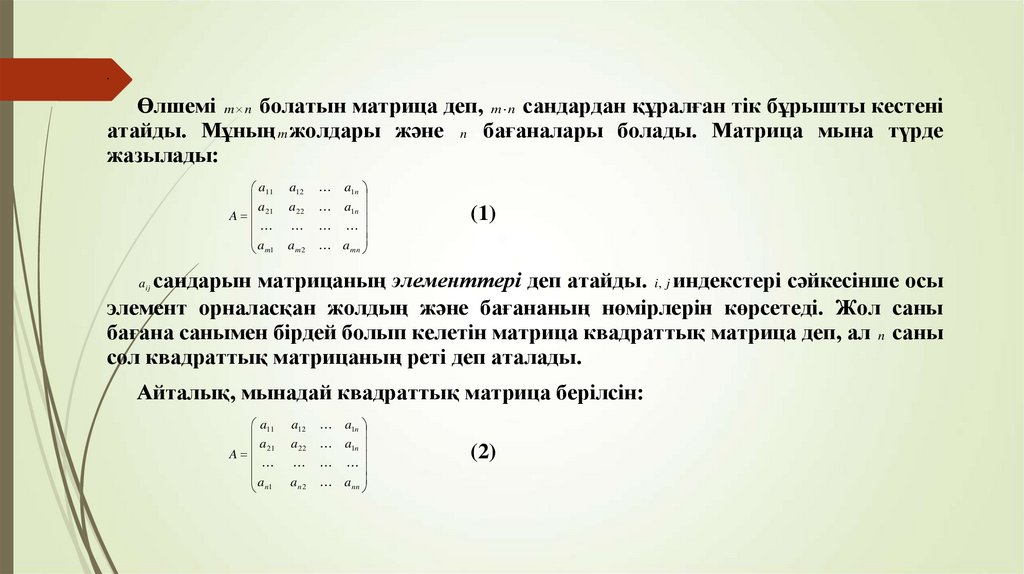 .Өлшемі m n болатын матрица деп, m n сандардан құралған тік бұрышты кестені