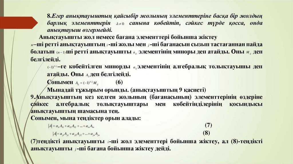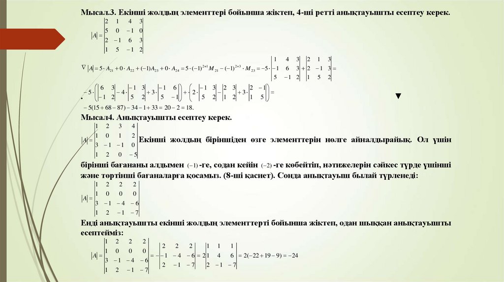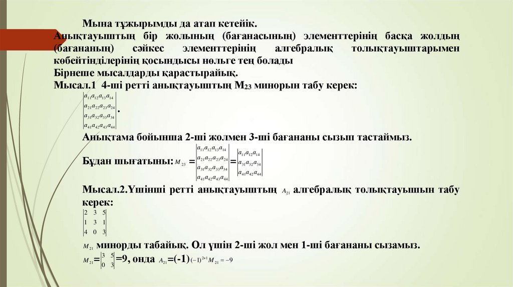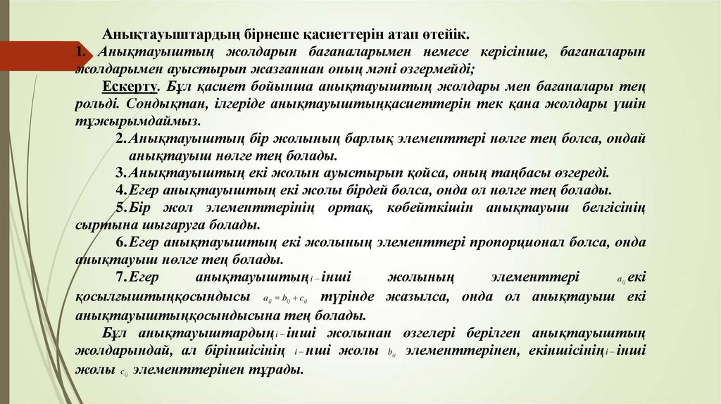 Екінші және үшінші ретті анықтауыштар. n- ретті анықтауыштар. Анықтауштың негізгі қасиеттері