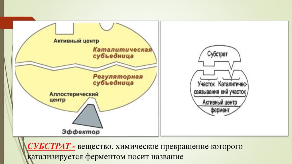 СУБСТРАТ - вещество, химическое превращение которогокатализируется ферментом носит название
