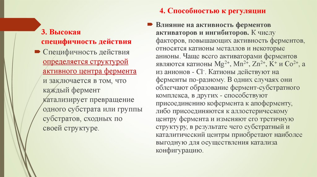 3. Ферменты (энзимы) – многочисленная группа специализированных белков, биологическая функция которых состоит в ускорении
