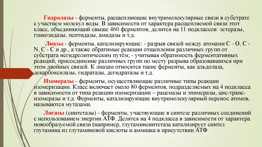 декарбоксилазы, гидратазы, дегидратазы и т.д.