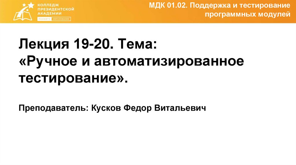 МДК 01.02. Поддержка и тестированиепрограммных модулей