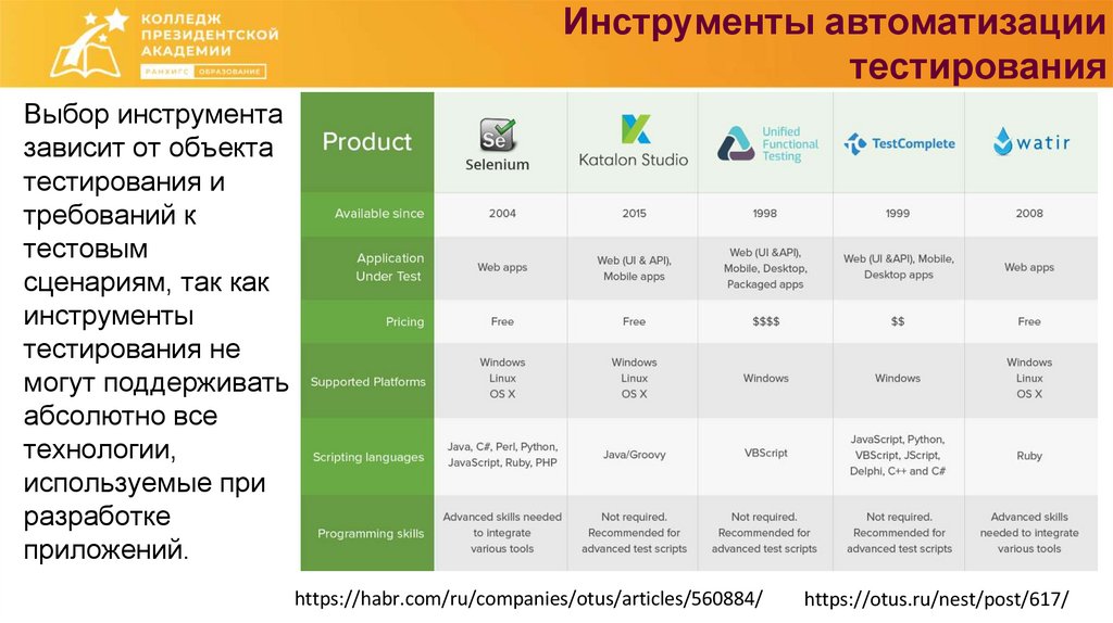 Инструменты автоматизациитестирования