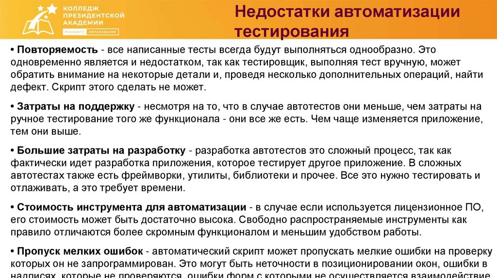 Недостатки автоматизациитестирования