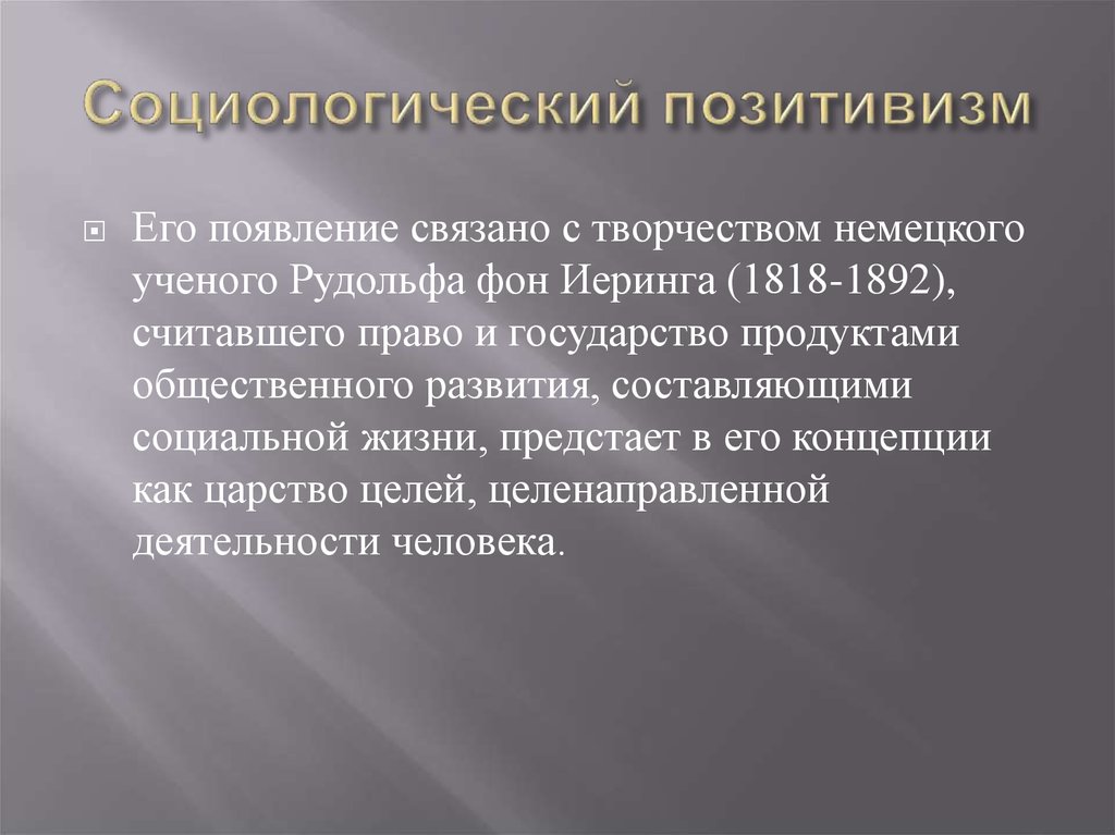 Социологический позитивизм - научный методизучения права, который отвергает естественноправовую методологию и философию права и