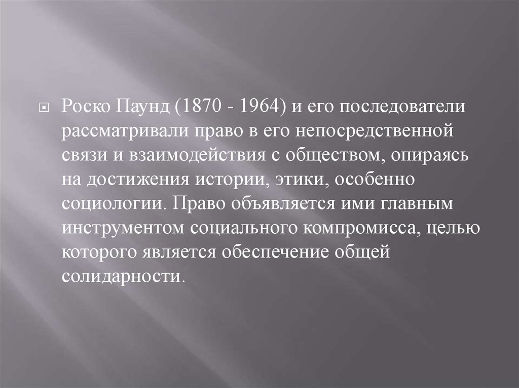 Роско Паунд (1870 - 1964) и его последователирассматривали право в его непосредственной
