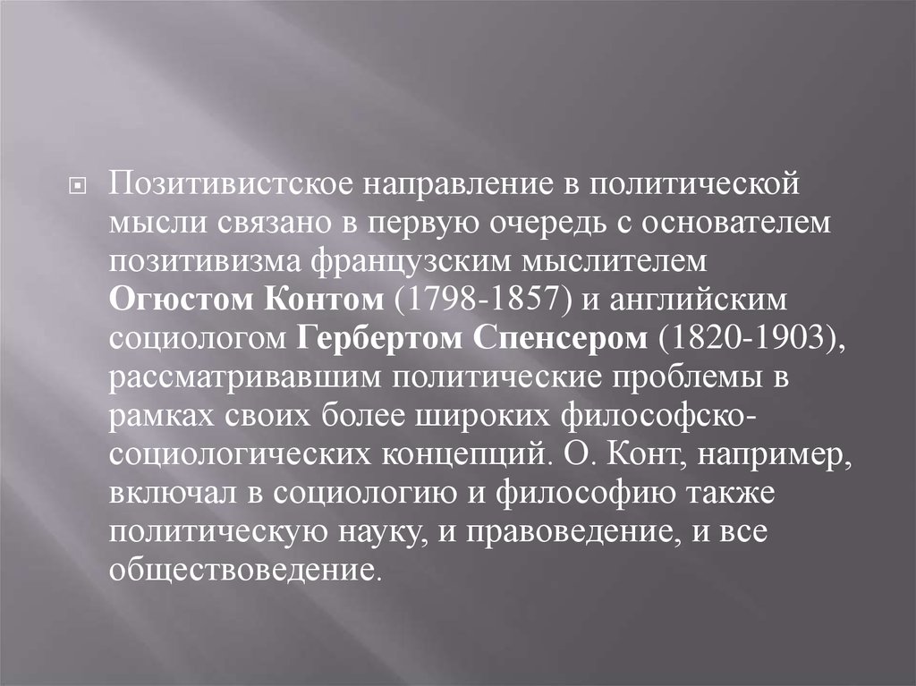 Позитивистское направление в политическоймысли связано в первую очередь с основателем