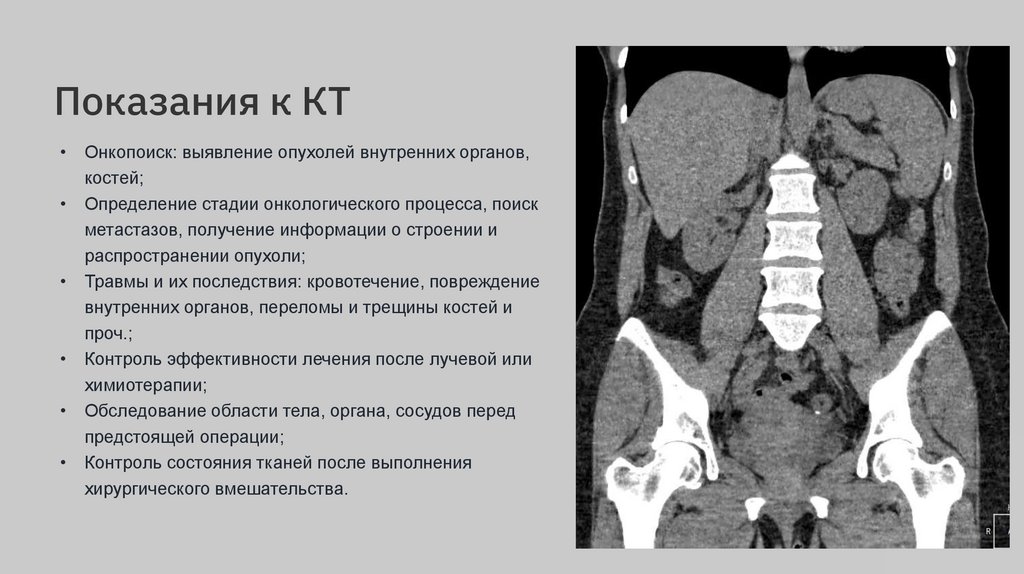 Показания к КТ• Онкопоиск: выявление опухолей внутренних органов,