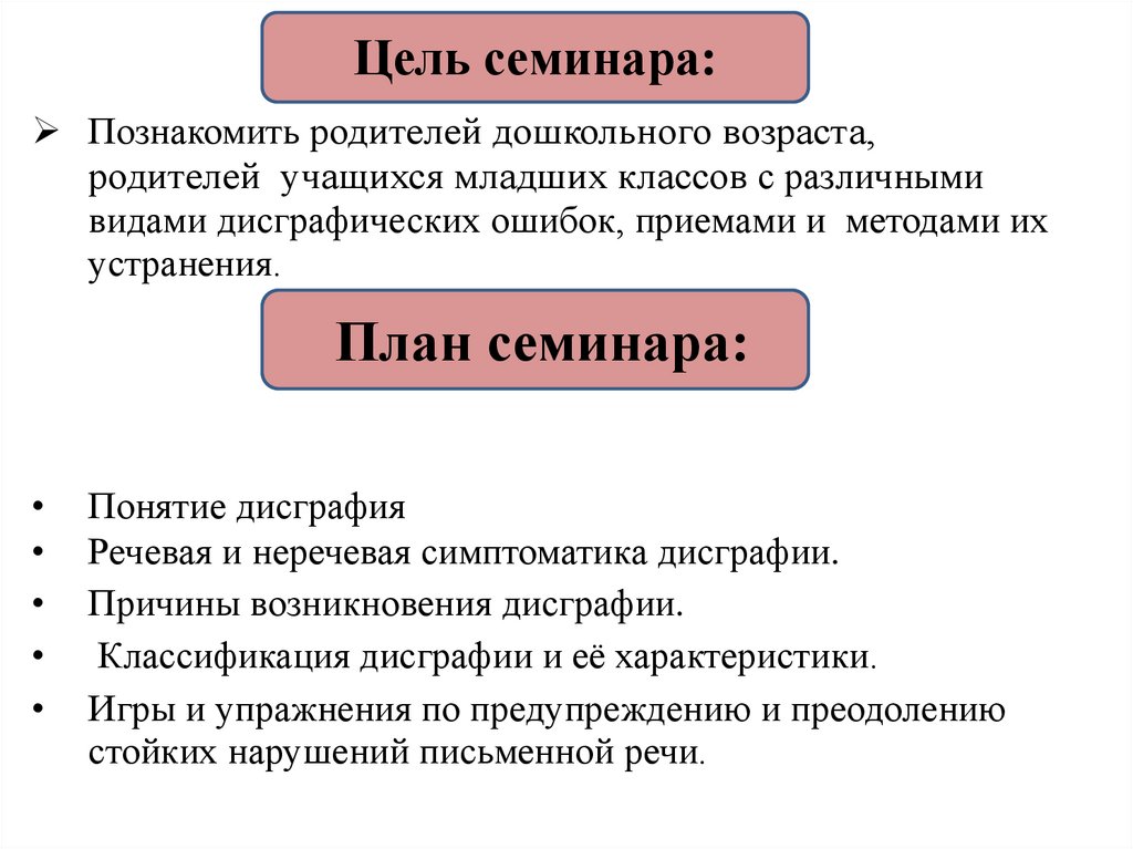 Цель семинара:Познакомить родителей дошкольного возраста,