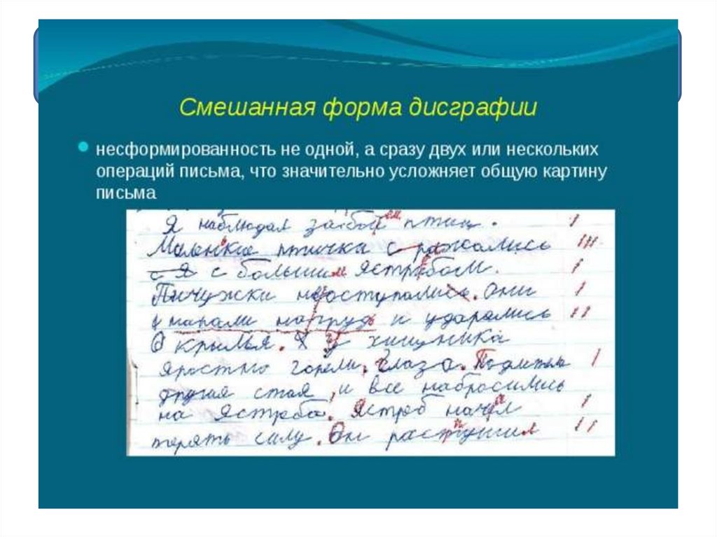 Смешанная форма дисграфии- это несформированность не одной, а сразу двух или