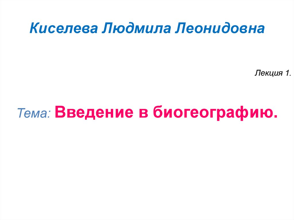 Киселева Людмила ЛеонидовнаЛекция 1.