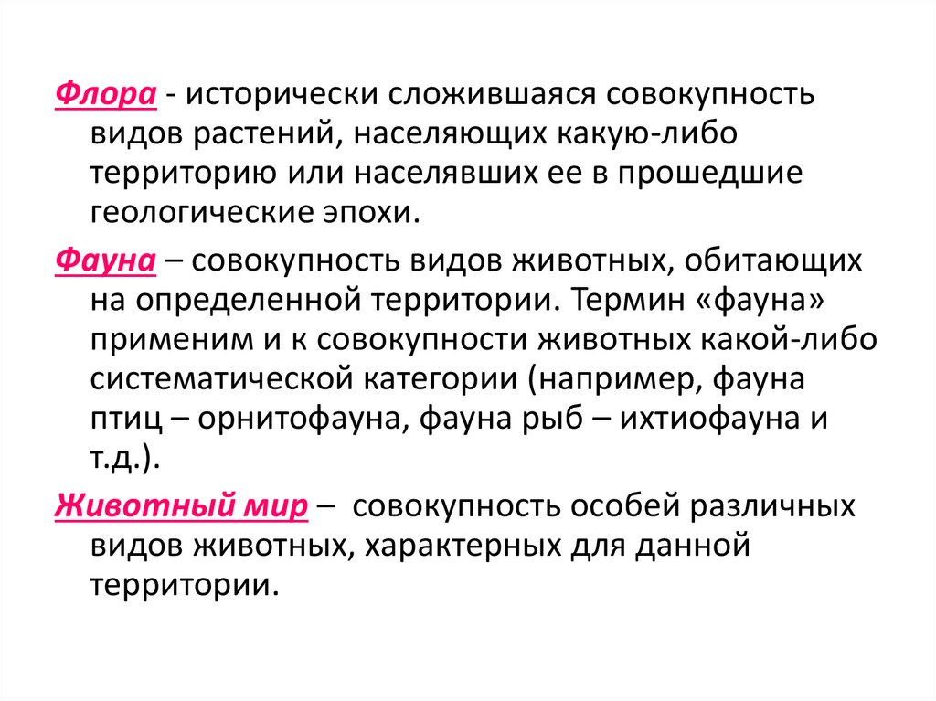 на определенной территории. Термин «фауна»
