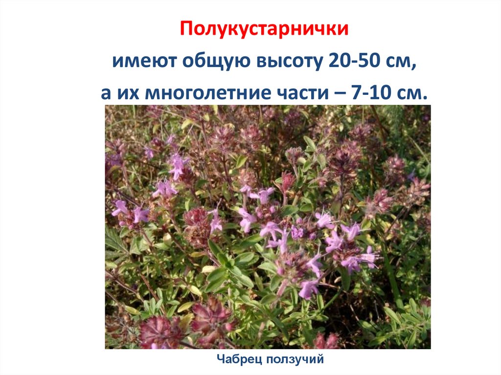полукустарнички, многие стелющиеся