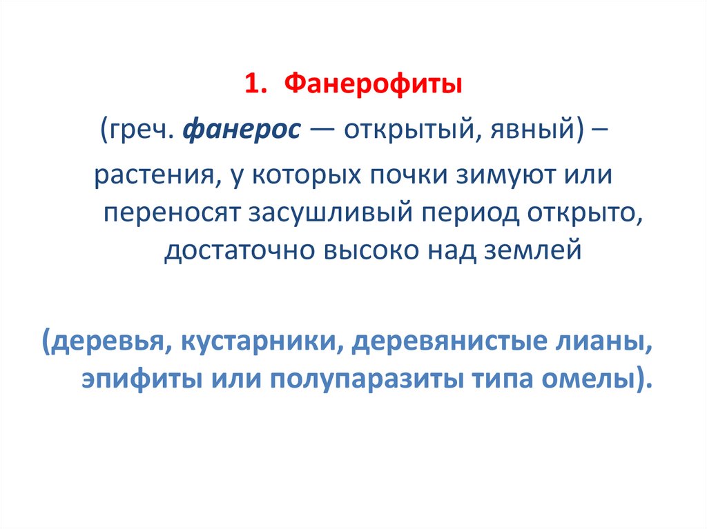 1. Фанерофиты(греч. фанерос — открытый, явный) –
