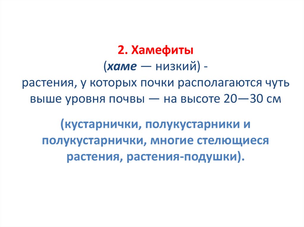 2. Хамефиты(хаме — низкий) растения, у которых почки располагаются чуть