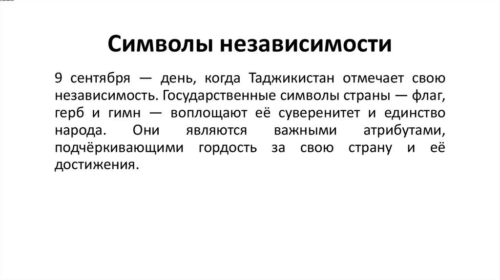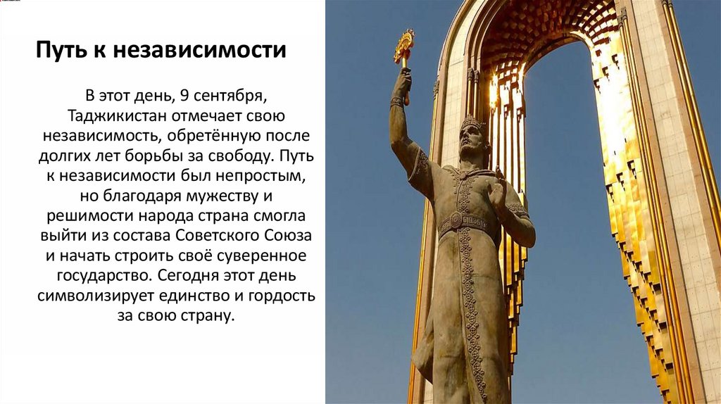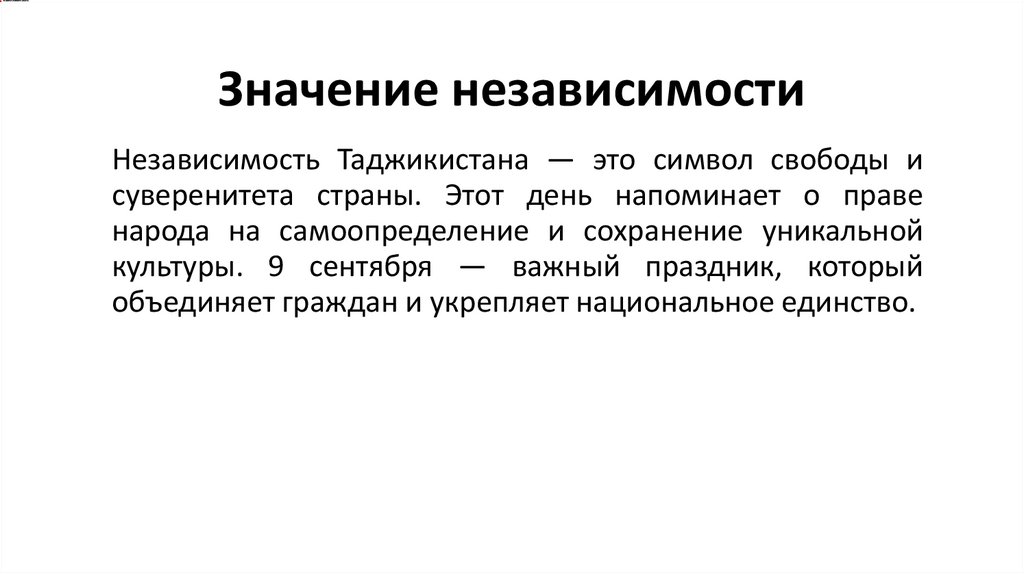 Значение независимостиНезависимость Таджикистана — это символ свободы и