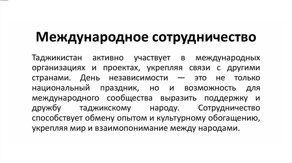 Международное сотрудничествоТаджикистан активно участвует в международных