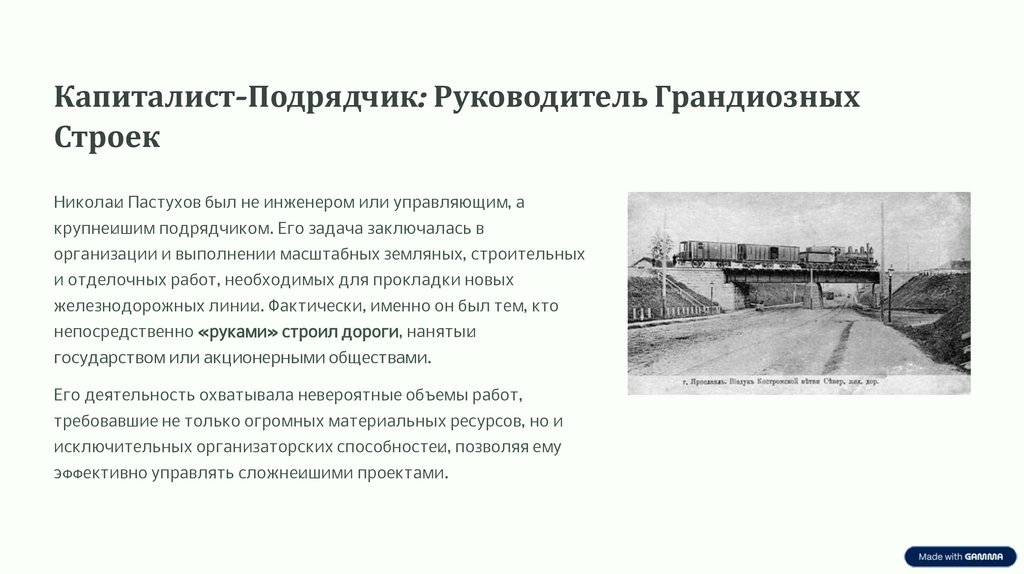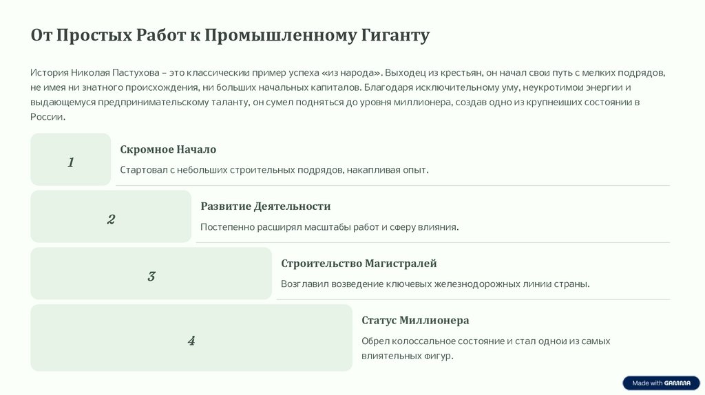 От Простых Работ к Промышленному ГигантуИстория Николая Пастухова — это классический пример успеха «из народа». Выходец из крестьян, он начал свой путь с мелких подрядов,