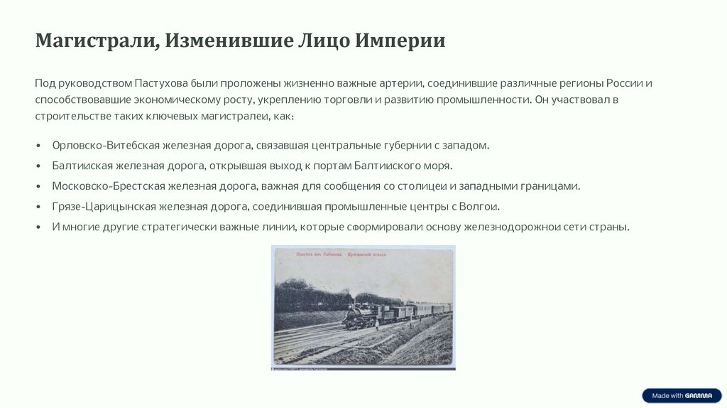 Магистрали, Изменившие Лицо ИмперииПод руководством Пастухова были проложены жизненно важные артерии, соединившие различные регионы России и