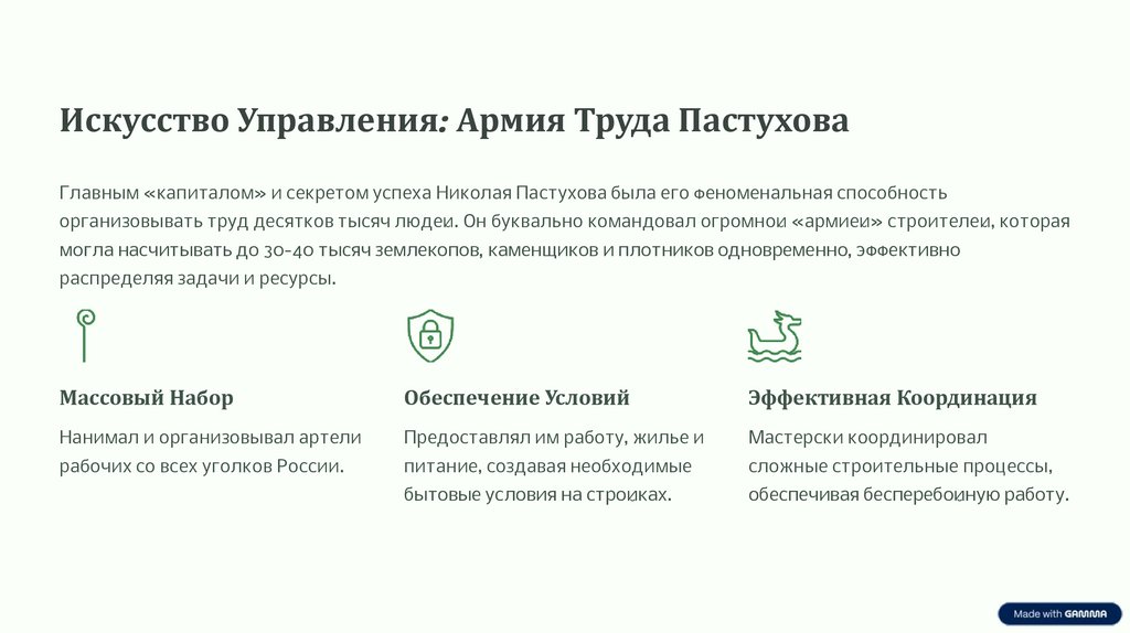 Искусство Управления: Армия Труда ПастуховаГлавным «капиталом» и секретом успеха Николая Пастухова была его феноменальная способность