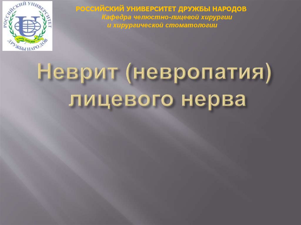 РОССИЙСКИЙ УНИВЕРСИТЕТ ДРУЖБЫ НАРОДОВКафедра челюстно-лицевой хирургии