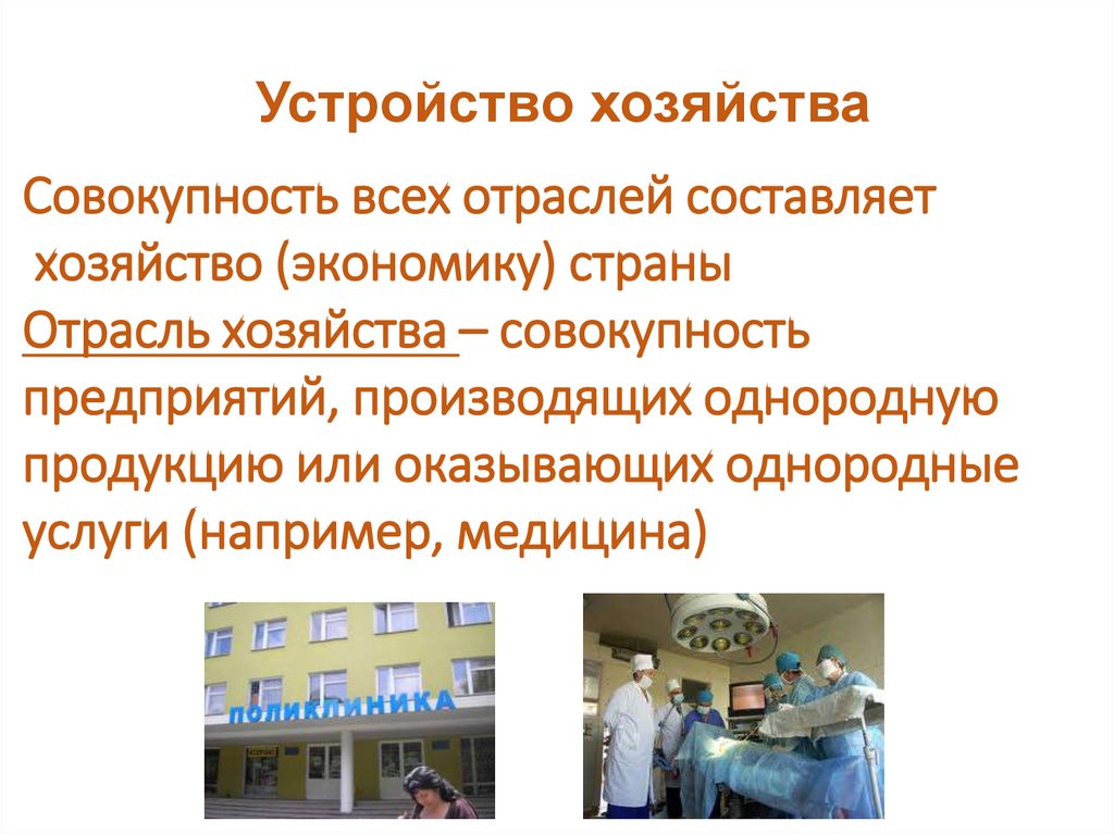 Устройство хозяйстваСовокупность всех отраслей составляет