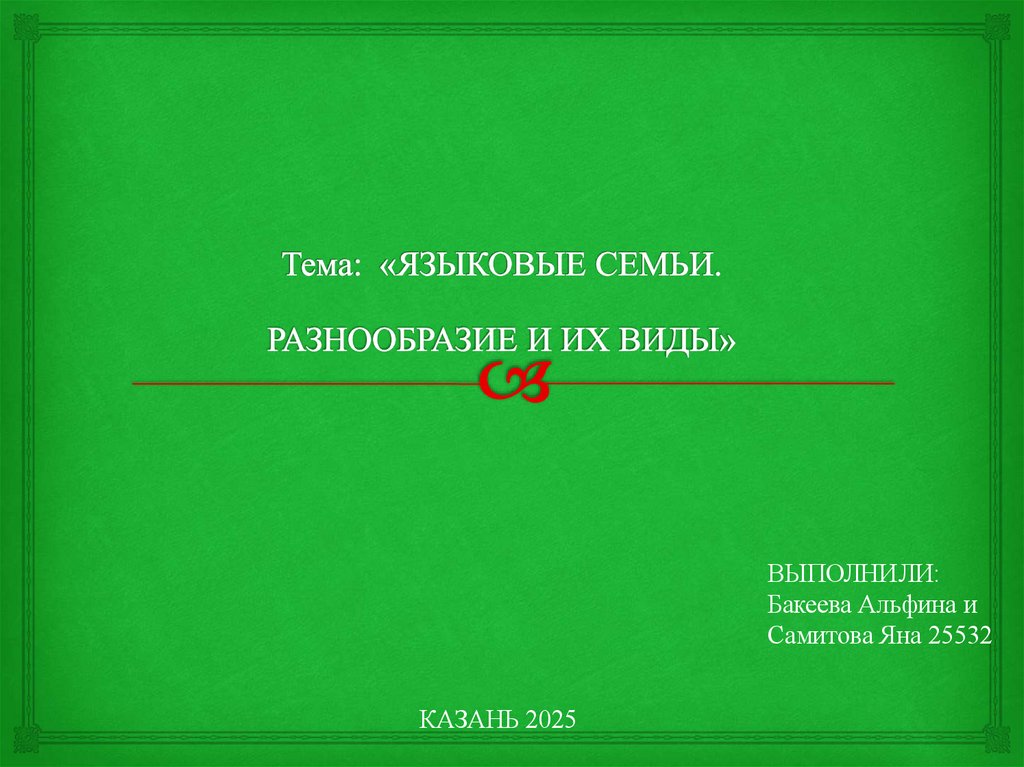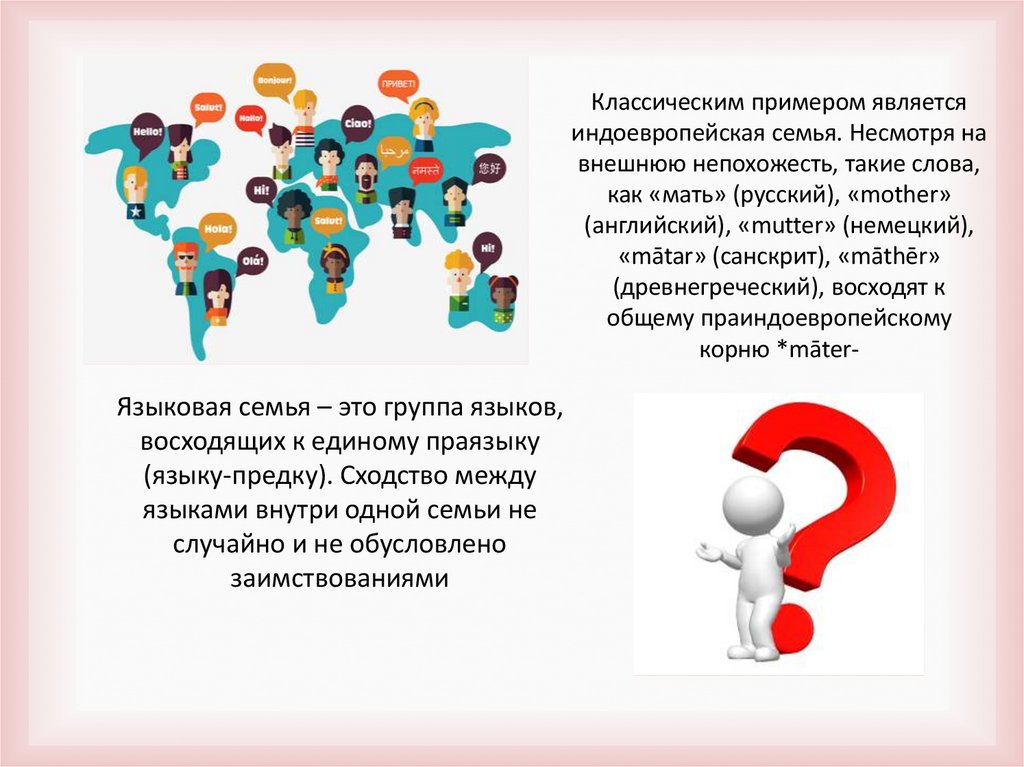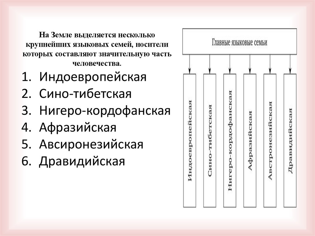 1. Тема: «ЯЗЫКОВЫЕ СЕМЬИ. РАЗНООБРАЗИЕ И ИХ ВИДЫ»