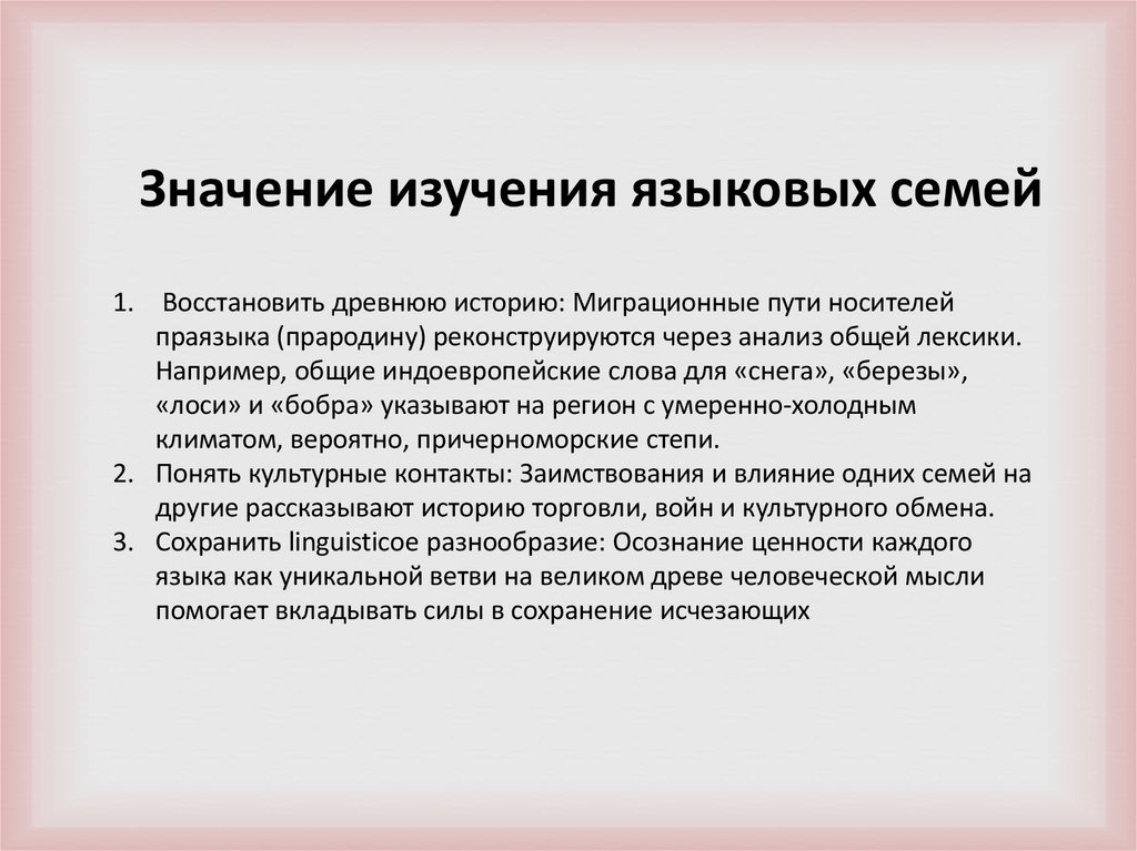 Значение изучения языковых семей1. Восстановить древнюю историю: Миграционные пути носителей