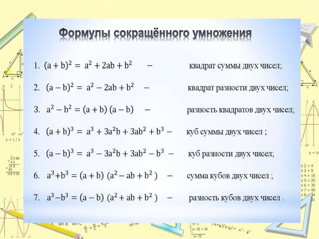 Формулы сокращённого умножения