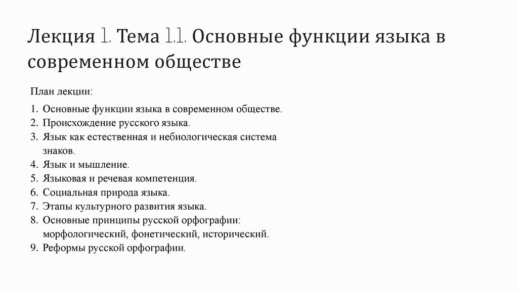 Лекция 1. Тема 1.1. Основные функции языка всовременном обществе