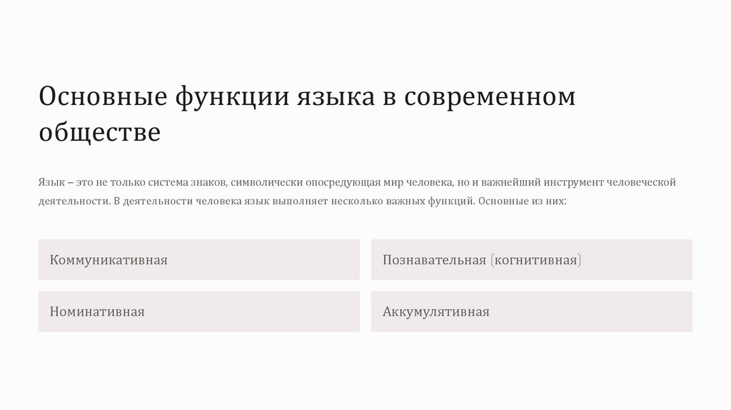 Основные функции языка в современном обществе. Лекция 1. Тема 1.1