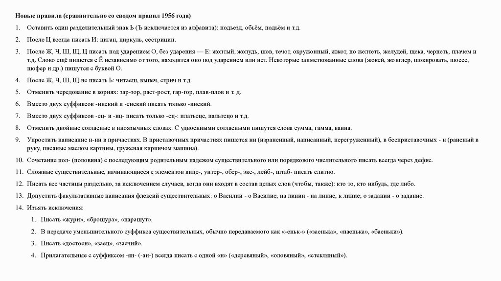 Новые правила (сравнительно со сводом правил 1956 года)1.