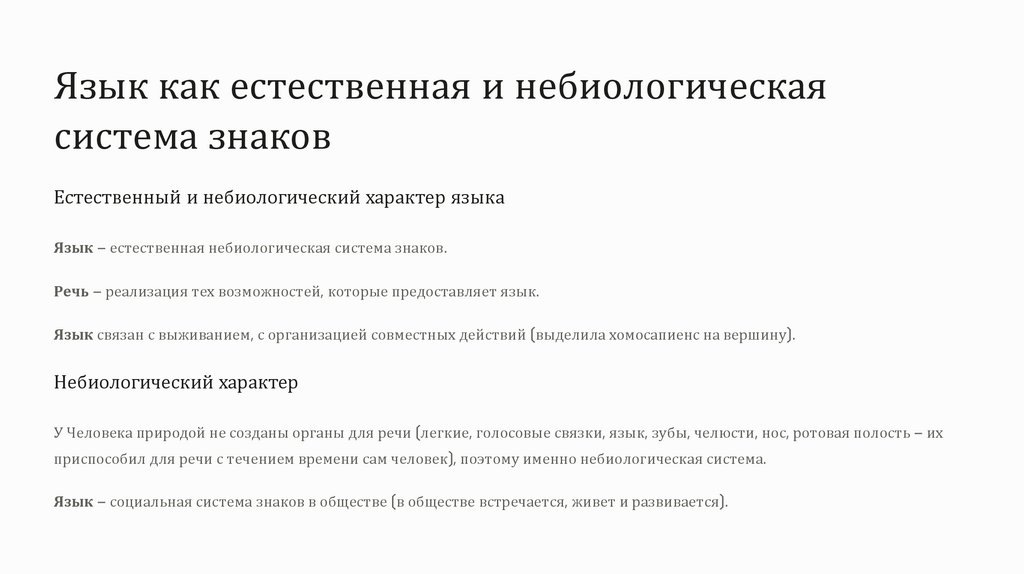 приспособил для речи с течением времени сам человек), поэтому именно небиологическая система.