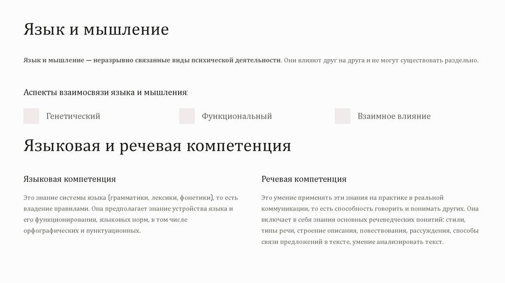 Язык и мышлениеЯзык и мышление — неразрывно связанные виды психической деятельности. Они влияют друг на друга и не могут существовать раздельно.