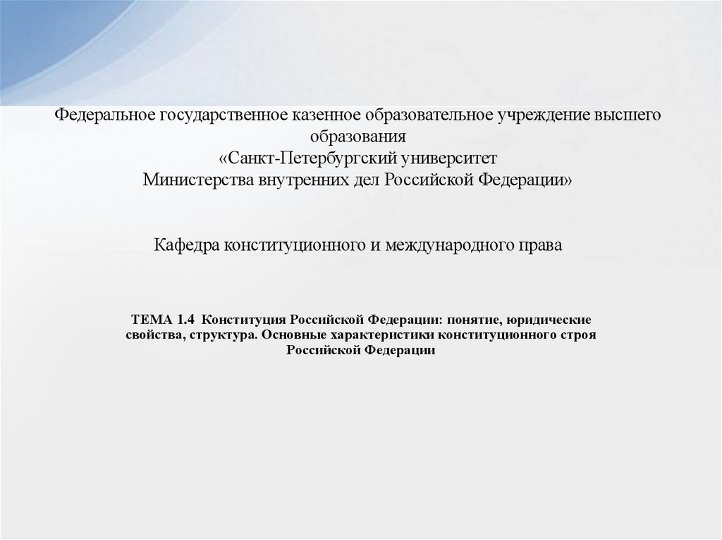 ТЕМА 1.4 Конституция Российской Федерации: понятие, юридические