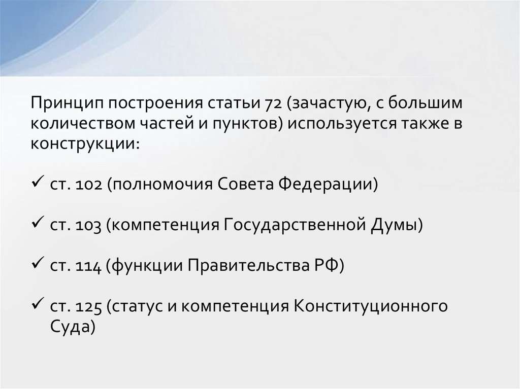 статья 65 основного закона страны имеет важнуюособенность: в ней содержится перечень