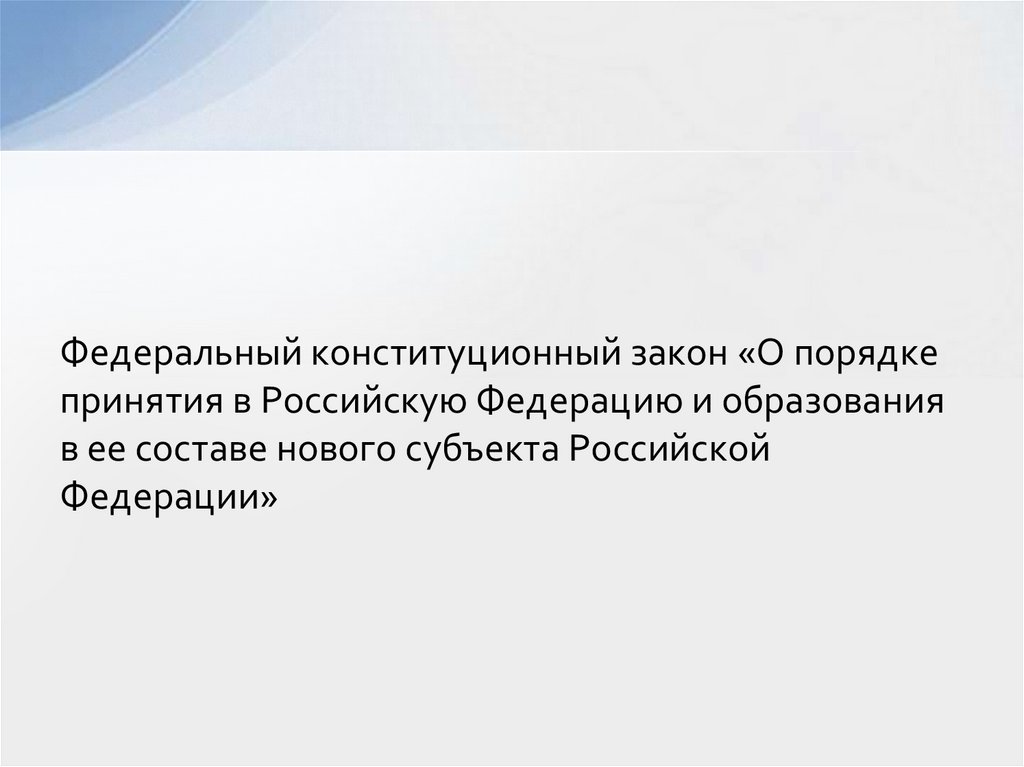 Федеральный конституционный закон «О порядкепринятия в Российскую Федерацию и образования
