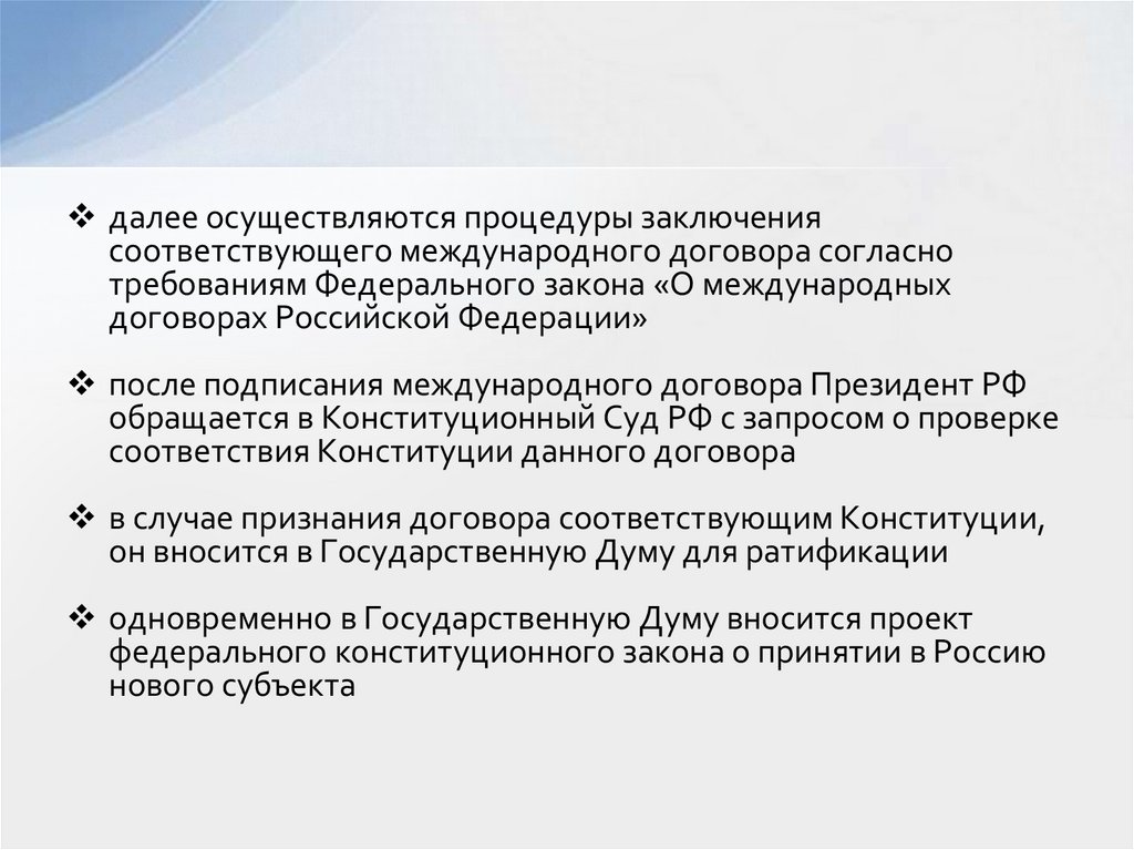 далее осуществляются процедуры заключениясоответствующего международного договора согласно
