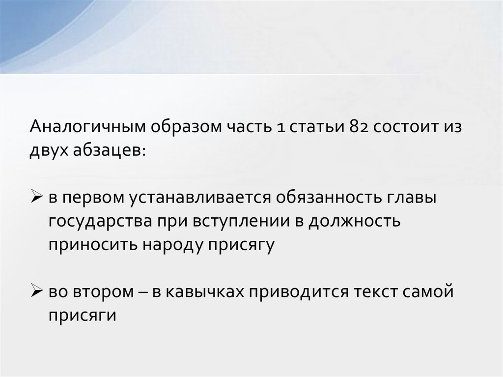 Большинство статей Конституции РФ состоит изпронумерованных абзацев, которые именуются