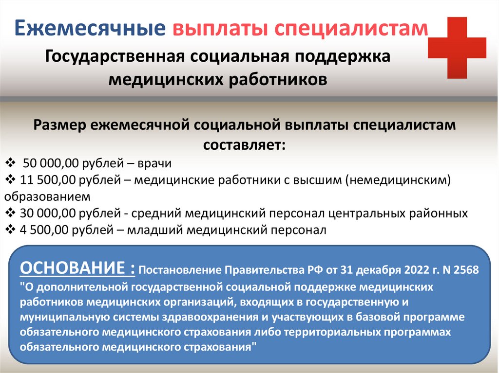 Ежемесячные выплаты специалистамГосударственная социальная поддержка