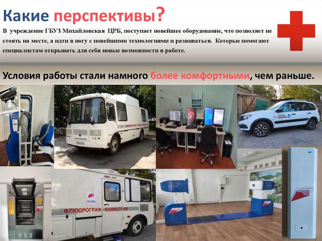Какие перспективы?В учреждение ГБУЗ Михайловская ЦРБ, поступает новейшее оборудование, что позволяет не
