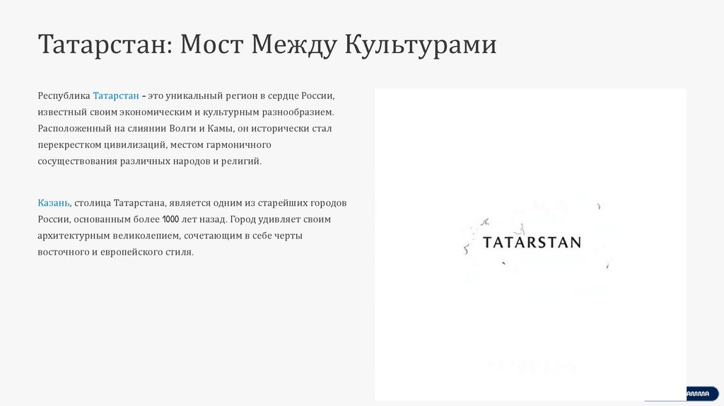 Татарстан: Мост Между КультурамиРеспублика Татарстан – это уникальный регион в сердце России,