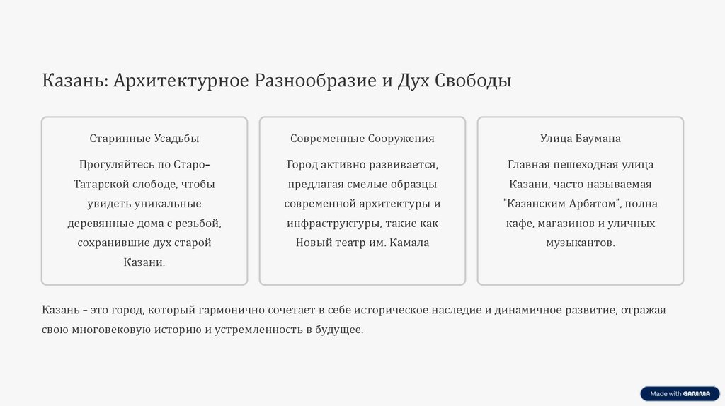 Казань – это город, который гармонично сочетает в себе историческое наследие и динамичное развитие, отражая