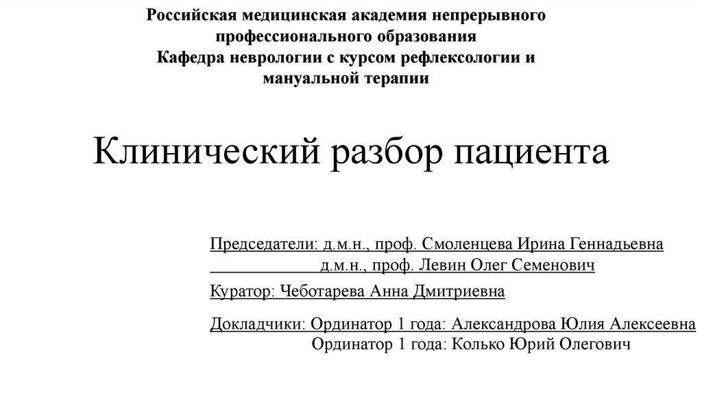Докладчики: Ординатор 1 года: Александрова Юлия Алексеевна