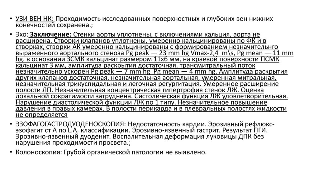 выраженного аортального стеноза Pg peak — 23 mm hg Vmax-2,4 m\s, Pg mean — 11 mm
