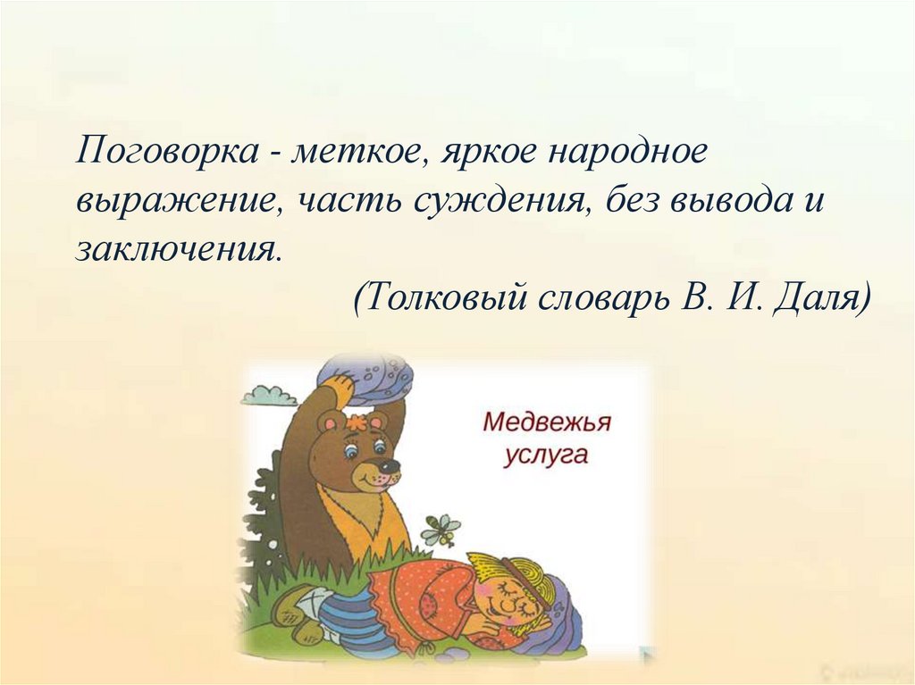 Поговорка - меткое, яркое народноевыражение, часть суждения, без вывода и