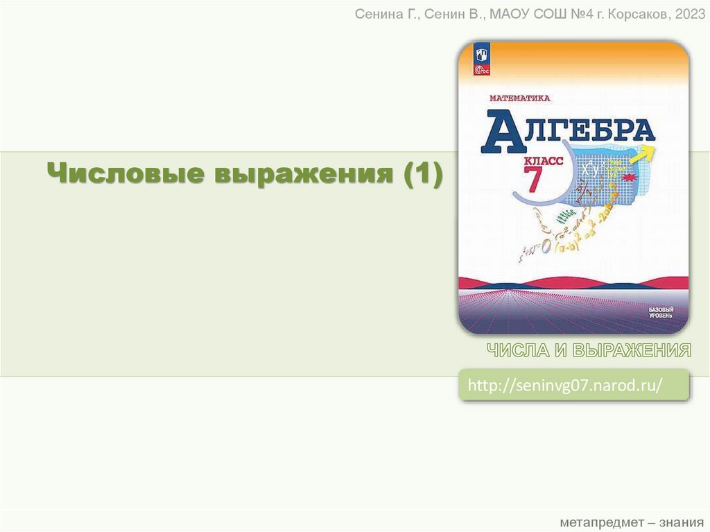 Сенина Г., Сенин В., МАОУ СОШ №4 г. Корсаков, 2023Числовые выражения (1)