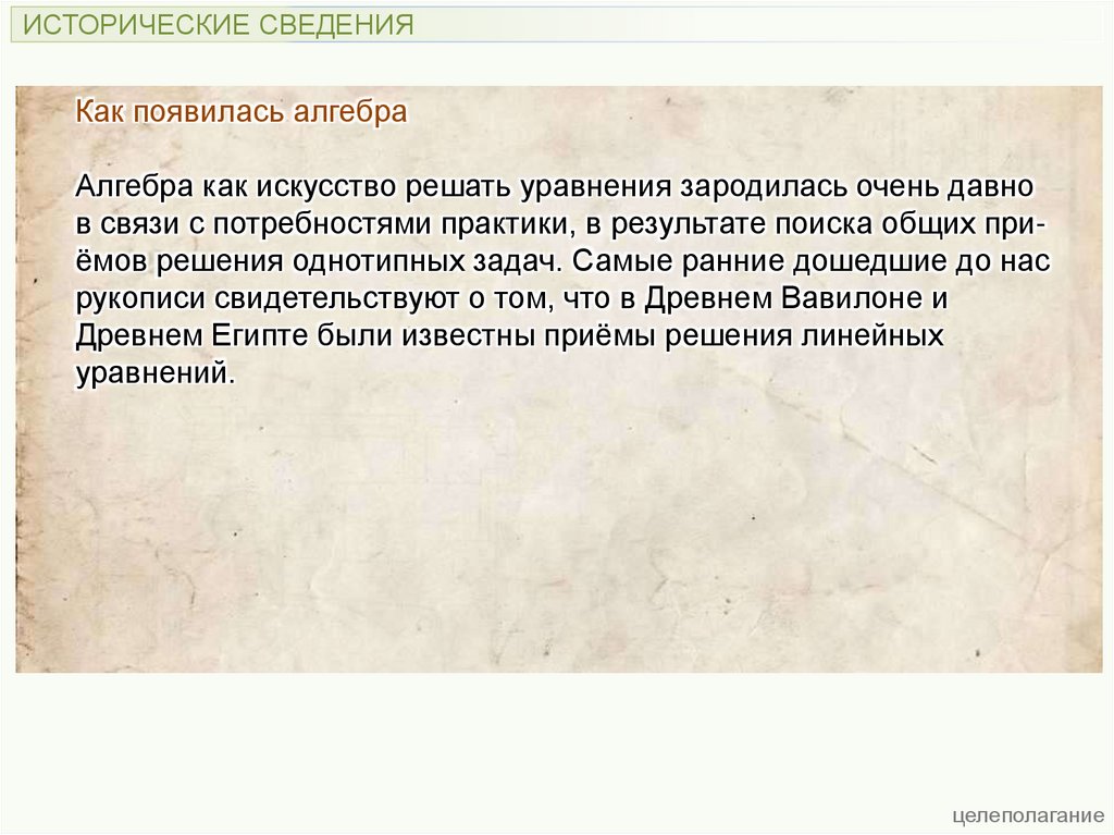 ИСТОРИЧЕСКИЕ СВЕДЕНИЯКак появилась алгебра