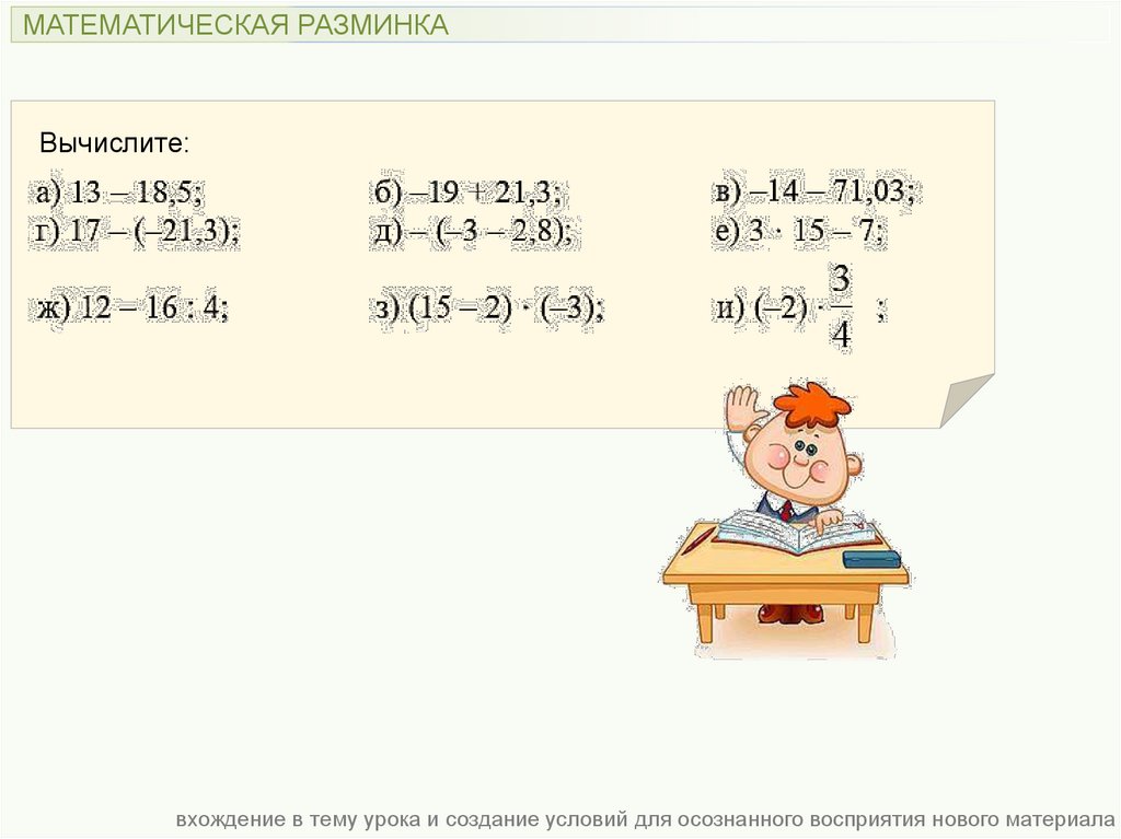 МАТЕМАТИЧЕСКАЯ РАЗМИНКАВычислите: