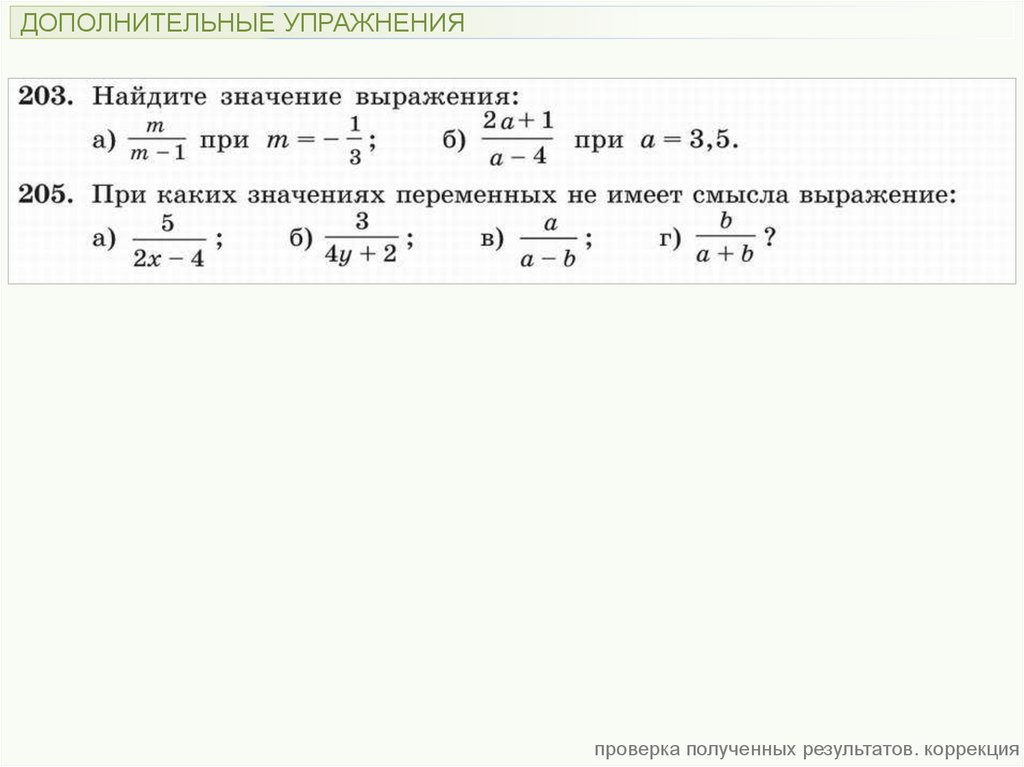 ДОПОЛНИТЕЛЬНЫЕ УПРАЖНЕНИЯпроверка полученных результатов. коррекция